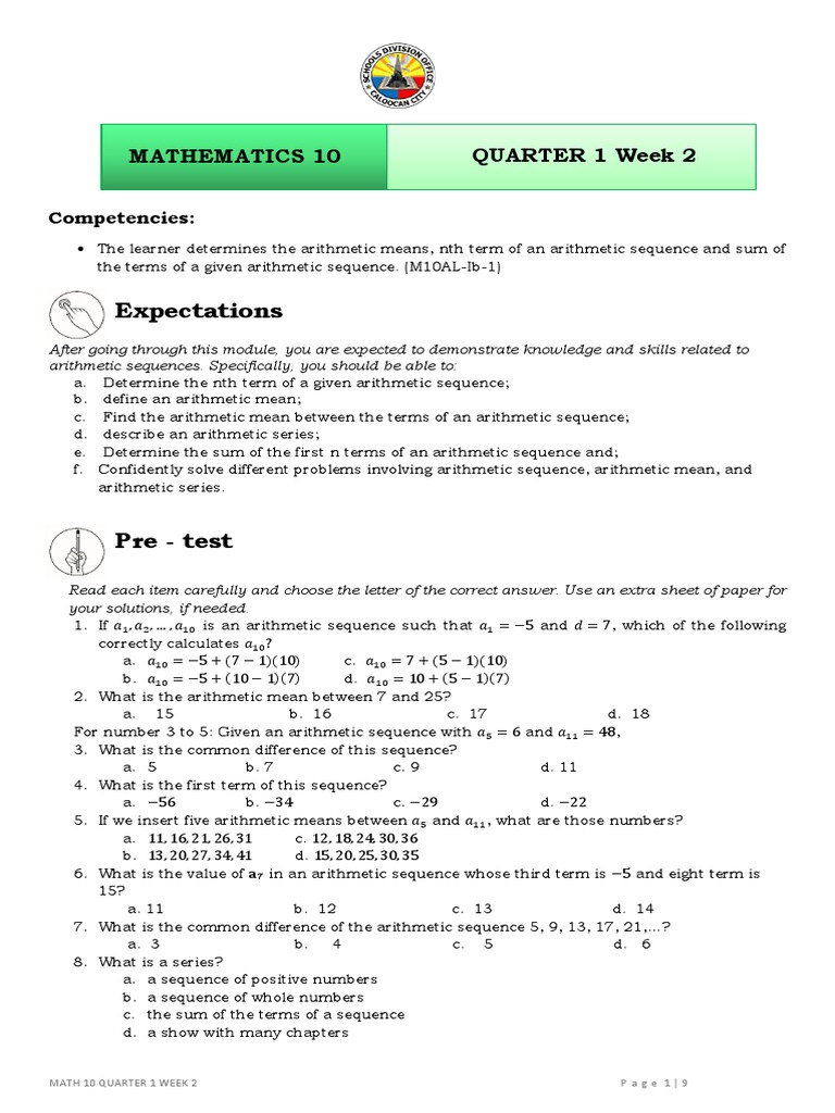 Math 10 Q1 Week 2 Pdf Mean Arithmetic